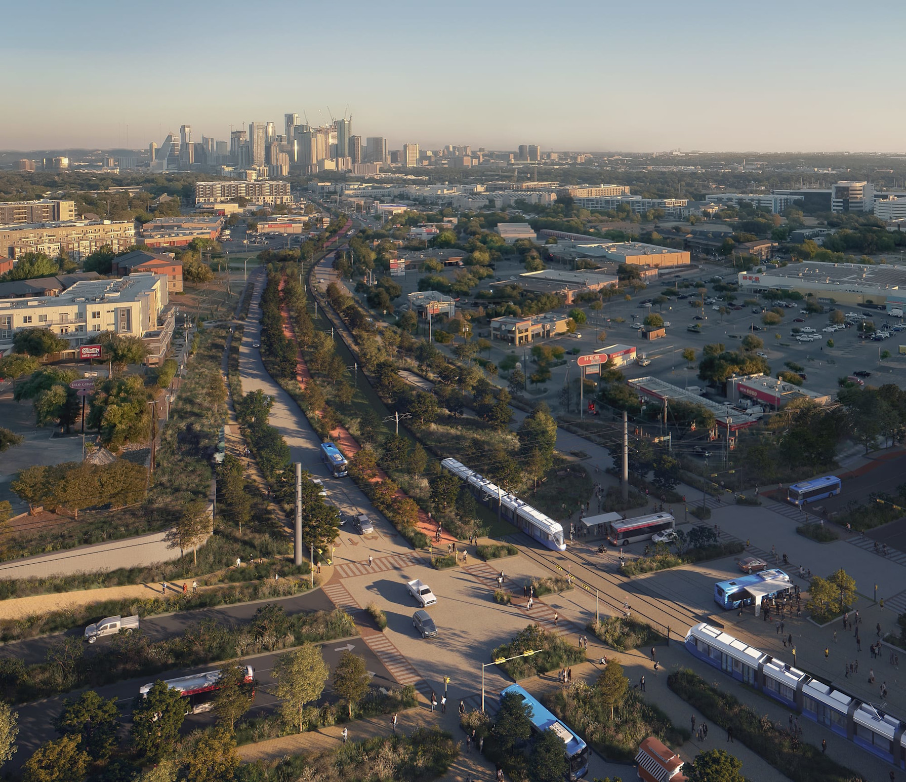 Austin Light Rail Phase 1 includes a nearly 10-mile light rail line with 15 stations, a new bridge over Lady Bird Lake, and expanded pedestrian and cycling pathways.Operating on its own dedicated railway,the line will allow riders to zip through the heart of Austin without having to sit in traffic — significantly reducing travel times to key destinations.
