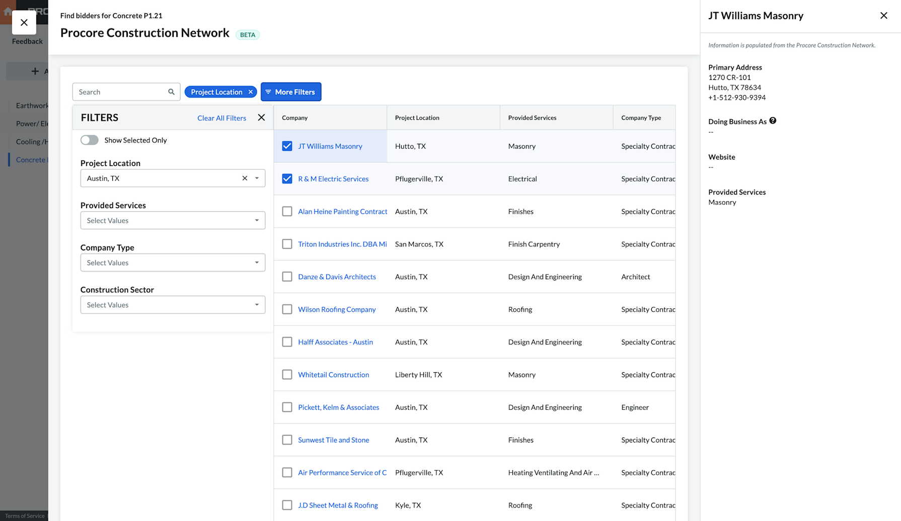 Procore Construction Network (PCN) is a digital directory for general contractors, specialty contractors, owners, suppliers — bringing together everyone in construction — to strengthen their online presence and find new partners. Once you’ve found companies on PCN you may want to invite to bid, add them to your directory to send them invitations.