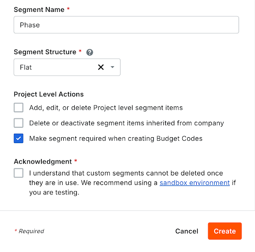Unternehmensadministratoren können nun durch die neue Möglichkeit, benutzerdefinierte Segmente beim Erstellen von Budgetcodes in der Projektstrukturplanung (PSP) als erforderlich festzulegen, eine höhere Konsistenz und Genauigkeit der Berichterstattung auf Portfolioebene gewährleisten. Diese Funktionalität steht nun allen Unternehmensadministratoren zur Verfügung und kann sowohl beim Hinzufügen als auch beim Bearbeiten von Segmenten angewendet werden. Mit diesem Update können Administratoren festlegen, welche benutzerdefinierten Segmente in jeden neuen Budgetcode aufgenommen werden müssen, wodurch die Dateneingabe über alle Projekte hinweg standardisiert wird.