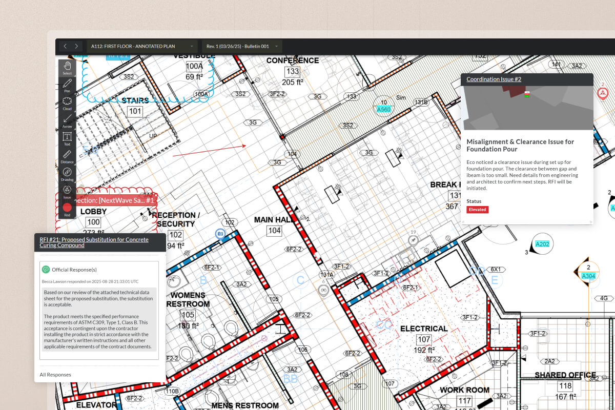 Sync site and office teams with construction-specific tools to keep communication, documentation and decisions connected as work progresses.