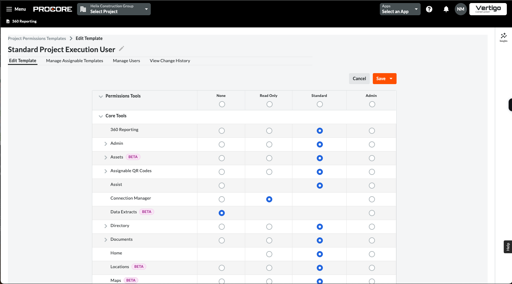 Launching April 21st. Procore has introduced granular permissions for the Project Execution dataset in both company- and project-level 360 Reporting tools. Now, users can access and report on all Project Execution data they are authorized to view, with permissions mirroring those set within each Project Execution tool—including private records. This enhancement means that if you have access to specific data in Procore’s Project Execution tools, you can seamlessly include that same data in your 360 reports, without needing tool-level admin rights.