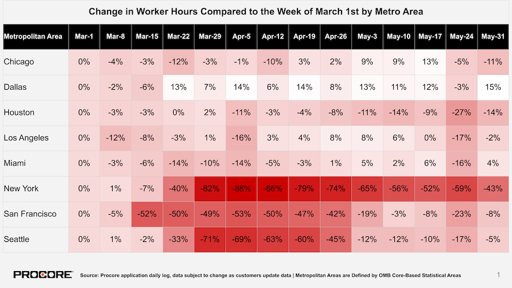 For a comprehensive look at the impact of COVID-19 on construction activity across the United States, please visit the page on the Procore website, where you can download the full metro-level report.