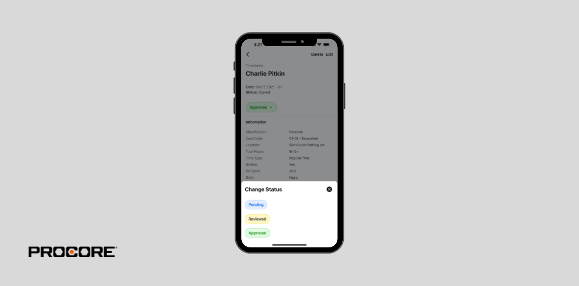 Procore Field Productivity helps users to customize timekeeping data entry better, identify timecard mistakes earlier, and reduce duplication between Timesheets and time and material (T&M) Tickets, resulting in a more productive team and streamlined process for payroll.