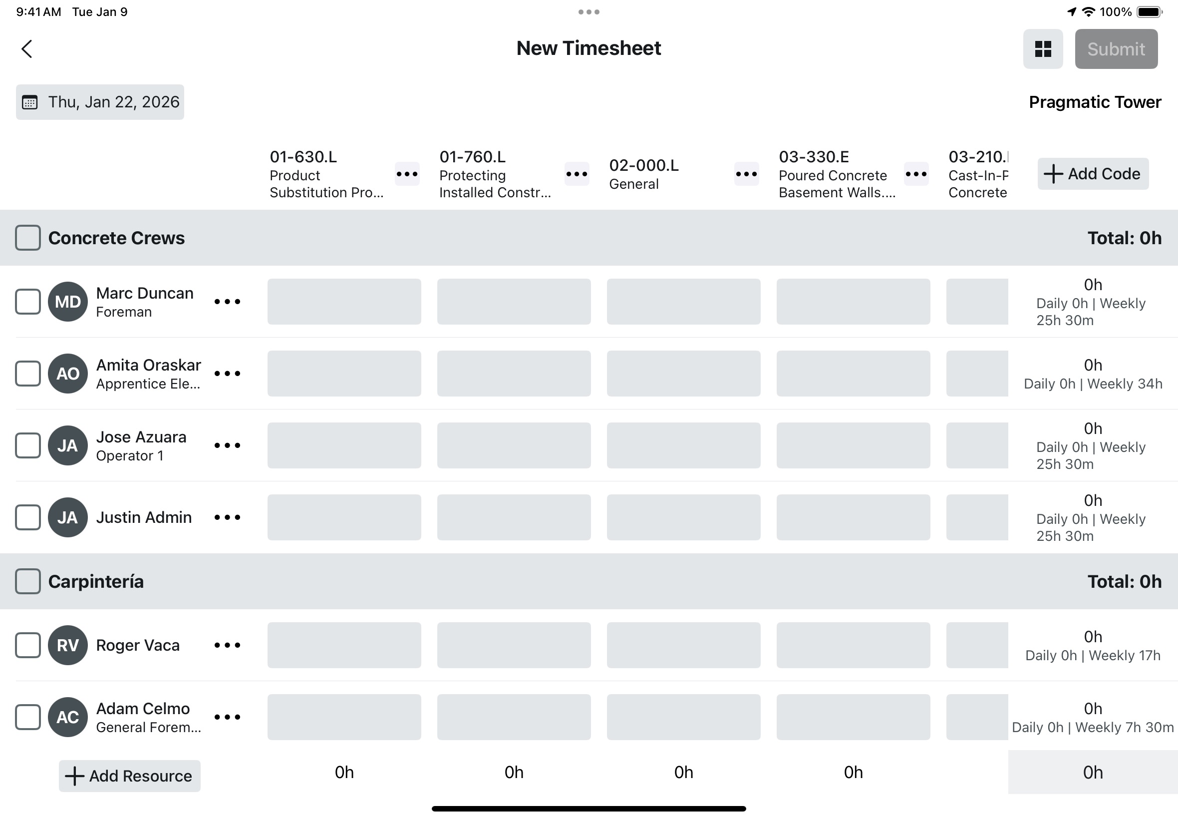 Launching March 17th. Grid-Based Time Entry is now available for Timesheets on Android and iOS tablets, bringing a familiar, spreadsheet-style layout to your workforce tracking. Designed to mirror the paper timesheets that foremen already use, this new feature dramatically reduces training time, speeds up time entry, and minimizes manual rework that can lead to payroll errors. By digitizing the process in an intuitive grid format, crews can log hours more quickly and accurately, helping eliminate inefficiencies and inaccuracies common with traditional, paper-based timekeeping.