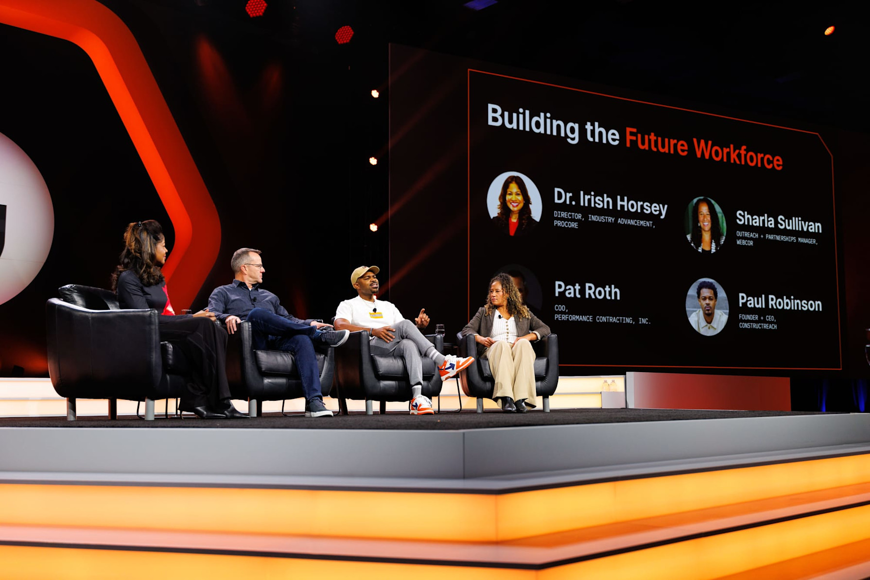 Groundbreak Day 2 kicked off with an industry panel discussing the labour shortage, an ongoing challenge facing construction businesses all over the world. Featuring notable Procore customers and partners including Webcor, Performance Contracting Inc. and ConstructReach, the panel stressed the importance of proactively creating solutions rather than waiting for them, highlighting the role workforce development and technology play in attracting and retaining talent.