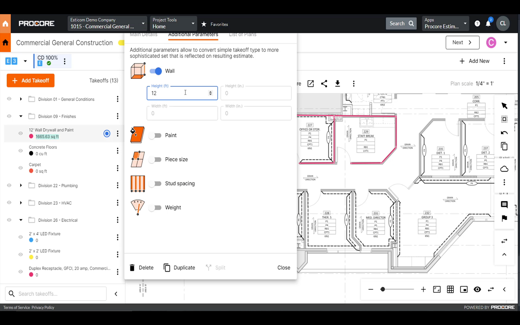 Save time and avoid errors with Procore Estimating’s new ‘weight’ as a unit of measure. Specialty Contractors like concrete and site prep can save more time during takeoff with the new weight unit of measure. Users are also able to transform other units of measure (ie. area/volume) to weight!