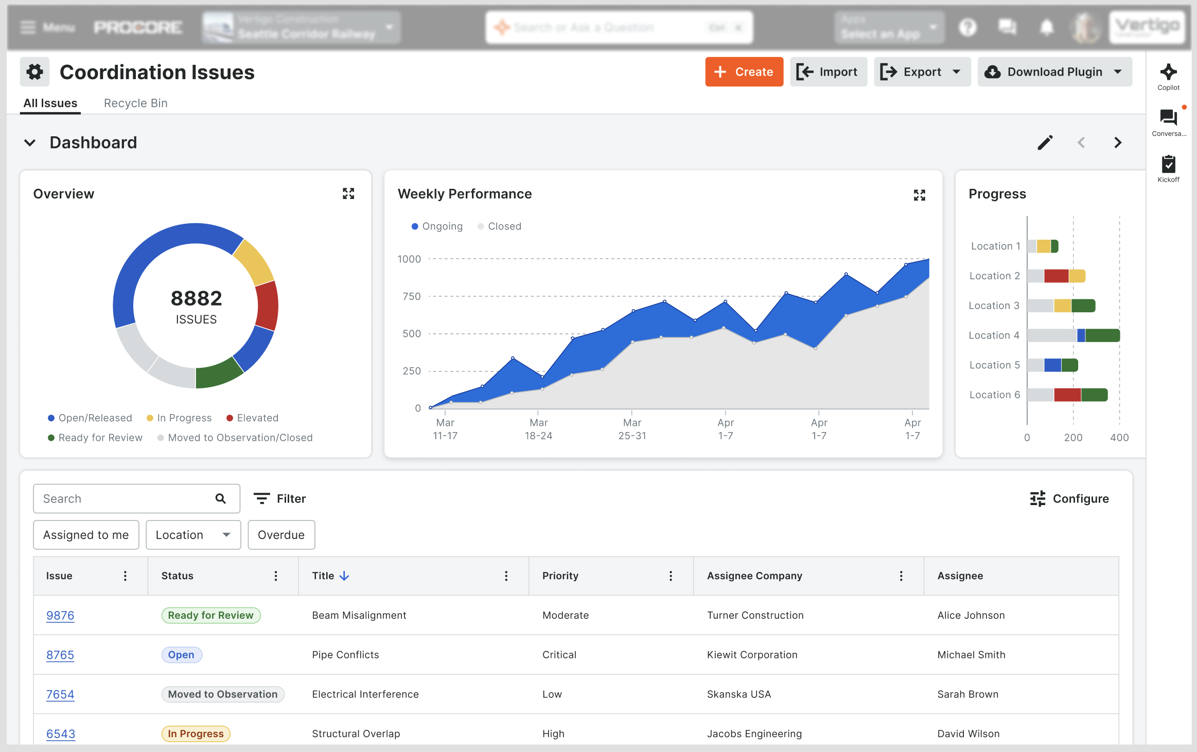 The new dashboard introduces advanced area charts to track Total, Closed, and Ongoing Issues over time, providing instant insights into project performance and backlog status. With bi-directional filtering, users can seamlessly interact with both charts and tables—applying filters in one view instantly updates the other—making it easier than ever to analyze, prioritize, and resolve coordination issues. This upgrade is designed to reduce cognitive load, accelerate decision-making, and drive higher engagement for architects, engineers, general contractors, owners, and specialty contractors.