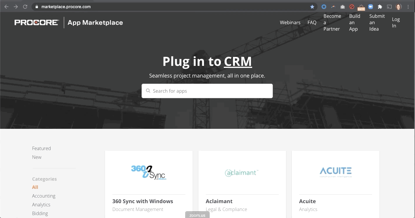 Want to learn more about a partner? Utilize the Contact Us button found on an App Marketplace listing. Submitting your contact information will notify a partner of your interest so they can follow up with additional details. If you can’t find an out-of-the-box app or integration that meets your needs, you can explore the selection of Procore certified consultants. These consultants are categorized by the geographies they serve and are experienced in building custom apps that integrate your company’s internal processes, systems, and data. Explore Procore’s App Marketplace and learn more about how you can simplify your workflows and maximize your technology investments through the platform integrations that are available.