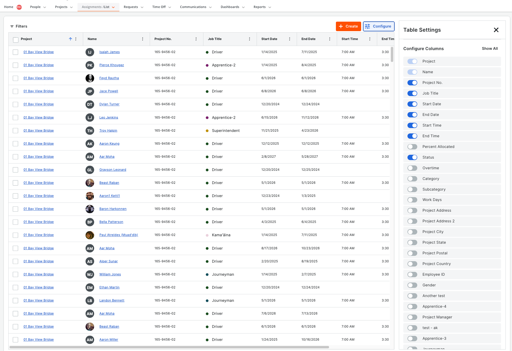 Launching December 16, Experience a faster, more intuitive Assignment List. View project and people info without leaving the page, easily configure filters, bulk update data, and sort every column. This streamlined interface boosts efficiency and aligns with the familiar Procore experience, helping you manage resources with ease.