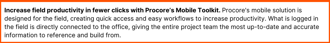 "Procore Quick Capture took 1/10 of the time to capture items on a punch walk." - Ben Bateman - Okland Construction (US)