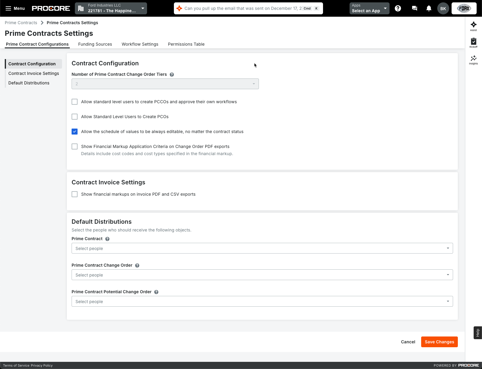 We’ve updated the Contracts Settings screens in both Project and Company Admin to align with Procore’s latest UI standards. By leveraging NGX components, these settings pages now offer a more intuitive, consistent, and responsive experience across the platform. This enhancement improves usability and performance, making it easier for administrators to configure contract-related settings efficiently. With these improvements, you’ll benefit from a streamlined interface that reduces friction and matches the look and feel of other recently updated Procore modules—helping your teams work faster and with greater confidence.