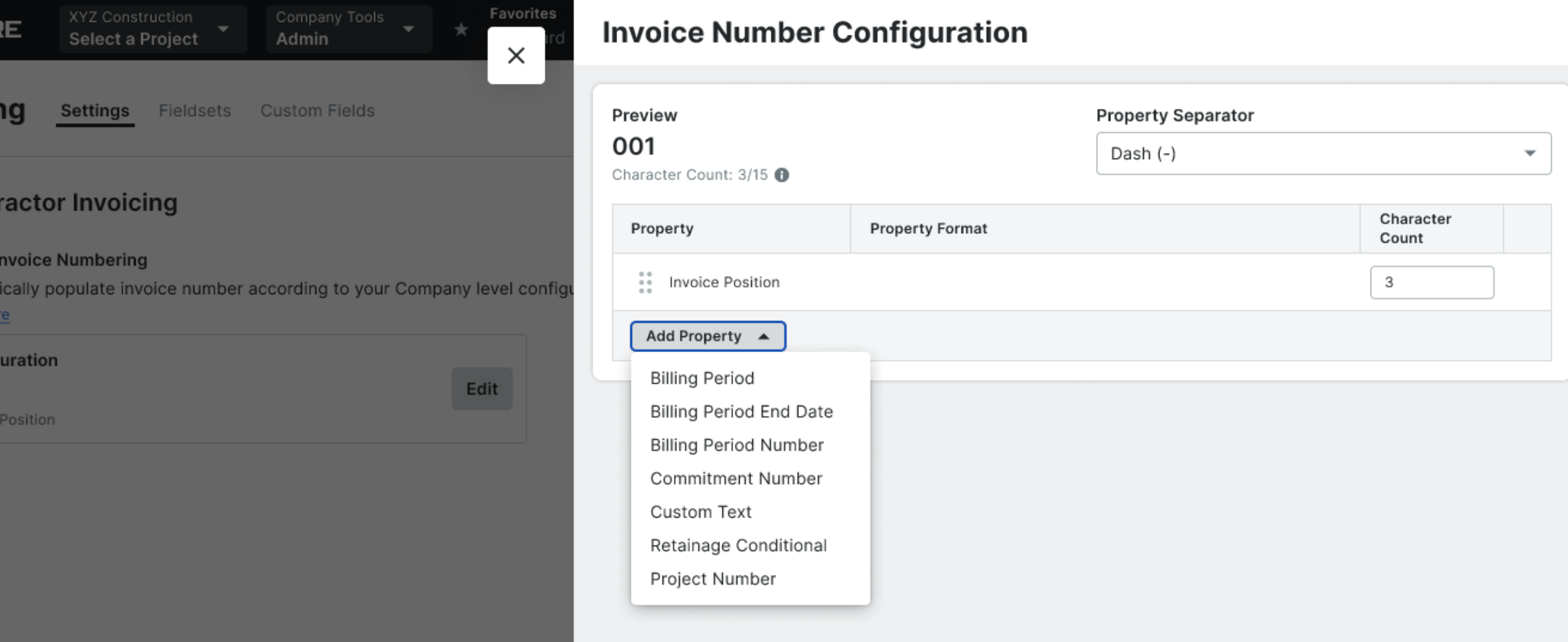 Procore now offers Automated Commitment Invoice Numbering, a powerful new feature that enables companies to configure and apply a standardized invoice numbering scheme across all newly created Commitment (Subcontract) Invoices. With this release, administrators can easily set up a custom numbering format at the company level through a dedicated settings page under Admin > Tool Settings > Invoicing. The intuitive configuration panel allows you to select components such as Invoice Position, Project Number, Commitment Number, and more, with real-time format previews and character count validation based on your ERP system requirements.