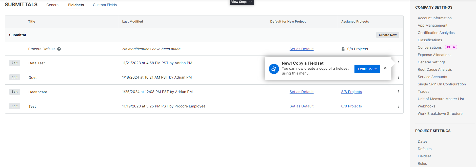 Company Admin Can Now Copy a Fieldset