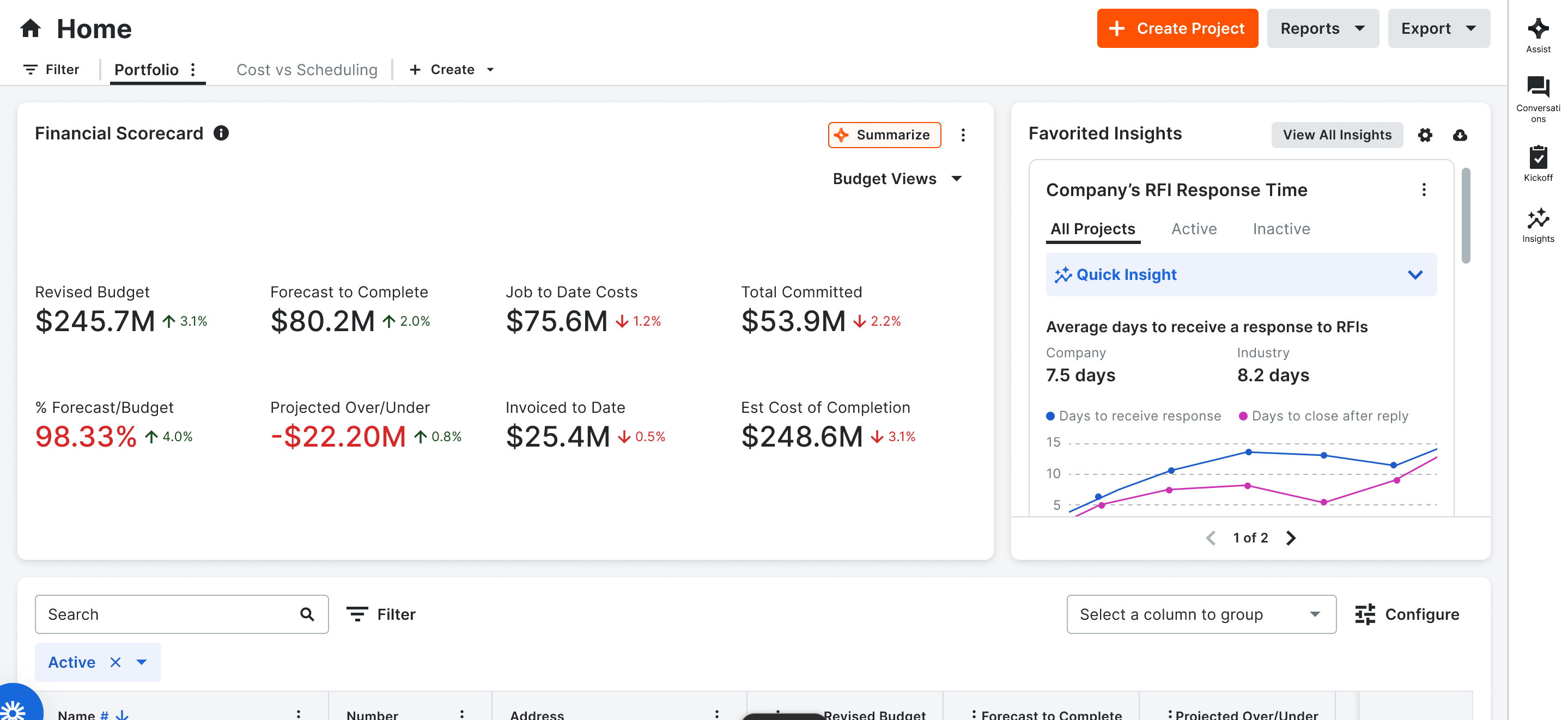 Beta update April 21. You can now access your company-level insights directly from the Procore Home page as part of the Procore Home open beta. This update brings key data front and center, eliminating the need to navigate through side panels or additional clicks. By surfacing insights immediately upon login, project teams can make faster, more informed decisions, reduce risk, and increase accountability. This streamlined experience is designed to drive greater tool adoption and empower users to act proactively with the most relevant information at their fingertips.