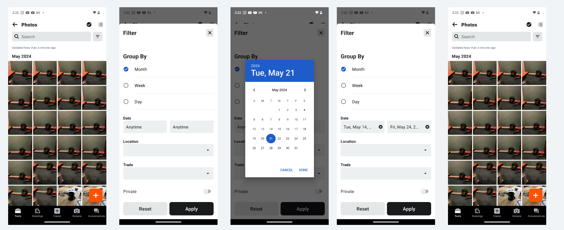 Say goodbye to endless scrolling to find a specific photo in Procore! With our latest update, users can now filter images by date range on both iOS and Android.