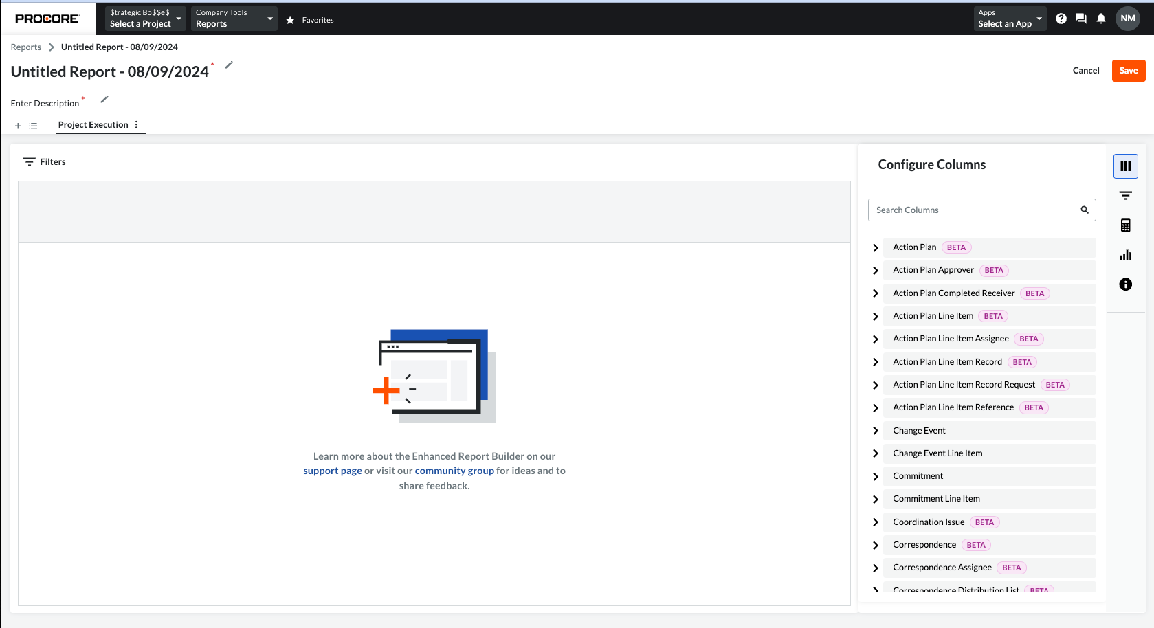 With this latest update, users can create cross-tool reports with Project Execution tools, including Action Plans, Daily Logs, Coordination Issues, Forms, and Observations, providing a more granular and detailed view of active and inactive projects*.
