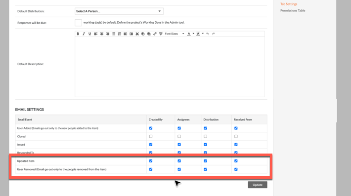 Introducing two new email notification options in the Correspondence tool Email Matrix to boost transparency and data integrity - Updated Item and User Removed.